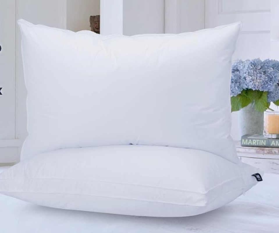 A 30% white goose down fill provides the softness characteristic of down while offering better support and a medium height, making it less prone to collapsing.